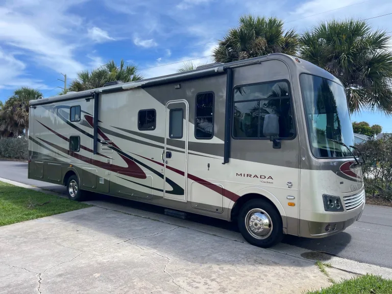 Delivery Only***Get ready for an adventure in this Fully Stocked 2012 Coachmen Mirada 34BH. Bunkhouse Sleeps 6 comfortably. Everything you need for a good night’s sleep, includes: 1 Comfy Queen bed, 1 Set of Bunk Beds (2 Twins), 1 Jackknife Sofa Bed, plus a dinette conversions. A private bedroom conveniently located in the rear. There’s room for everyone and everything. Conveniently located in this Coachmen Class A are a full center kitchen with a 3-burner gas cooktop, stove, microwave, and fridge. Large living area plus a full bathroom. The Mirada Class A makes on-the-road living easy with features like 2 TVs, plus 1 in each bunk, a gas generator, & a fresh water holding tank. Get your adventure started now! We do not allow Travelers to Boondock with our RV. (Fort Wilderness, Jetty Park, LongPoint State Park, Manatee Hammock State Park, Country Thunder)What's includedEach trip will include a fresh set of linens for each bed, 4 camping chairs, a propane griddle (propane included), camp table, all kitchen essentials, & cooking essentials (indoor & outdoor) plus a Coffee pot. RV will be at your campsite, setup, and A/C running. Just pull in, and start your fun-filled adventure.RecommendationsFort Wilderness, Jetty Park, LongPoint State Park, Manatee Hammock State Park