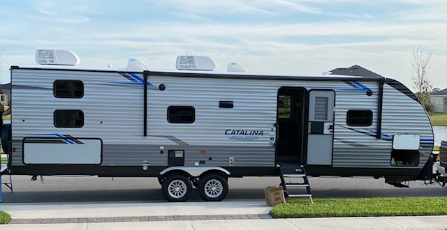 Don’t have a tow vehicle? No worries! We only offer drop-off and pick-up service. So start your hassle-free vacation with our set-up and pick-up service within 80 miles of the Space Coast of Florida: Sebastian Inlet, Jetty Park- Port Canaveral and others. If your destination is outside of the delivery radius, we will make efforts to accommodate for an additional fee. Under ( Enhance Your Trip) just check the Ext Mileage Delivery box. Brand new, modern light woods throughout, well-equipped 2021 36 ft travel trailer with: Queen bedroom, 4 bunks and pull out couch, convertible dinette, fireplace, fully stocked kitchen, awning with LED lights, outdoor stereo, TV's, storage, and full bathroom. Just book your favorite location within 80 miles and provide us with the reservation information. This allows us to deliver and setup for your adventure. Just bring your linens pillows, towels and favorite blankets to make it feel like home! OR select our additional towels and linen service for an additional fee.