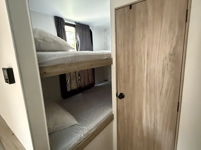 Welcome to Bunkhouse Bliss, a 2024 Winnebago Access 26BH designed for families who want comfort, space, and adventure. With room for up to 6 campers, it features a private queen bedroom, rear double bunks, and both a sofa and dinette that convert to extra beds. Inside, you’ll enjoy a fully equipped kitchen with a 3-burner stove, oven, microwave, and 10 cu. ft. fridge, along with a full bathroom and modern finishes that make the space cozy and practical. Powerful air conditioning, a furnace, and generous storage ensure everyone stays comfortable on the road.Step outside and the adventure continues with a full outdoor kitchen complete with griddle and mini fridge, a large power awning with LED lighting, and plenty of pass-through storage for camping gear. At just ~5,700 lbs dry weight with a hitch weight of about 698 lbs, it’s towable by most half-ton trucks. Whether you’re roasting marshmallows, cooking breakfast under the awning, or making memories on the road, Bunkhouse Bliss is the perfect basecamp for family fun.What's includedFully stocked like an Airbnb—just bring food and clothes! Fresh linens, towels, starter toiletries, and RV-safe toilet paper provided. Kitchen includes cookware, dishes, coffee maker, seasonings, and full appliances plus outdoor griddle and mini fridge. Enjoy camp chairs, rug, awning lights, card games, roasting sticks, first-aid kit, and cleaning supplies for a hassle-free trip.Other things to noteThis RV is pet friendly! Please, no smoking.
