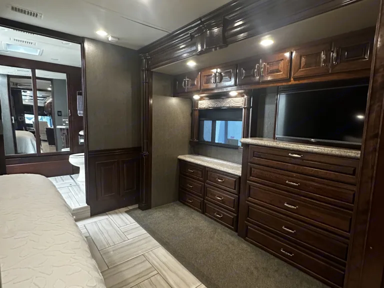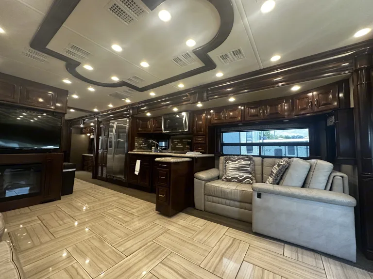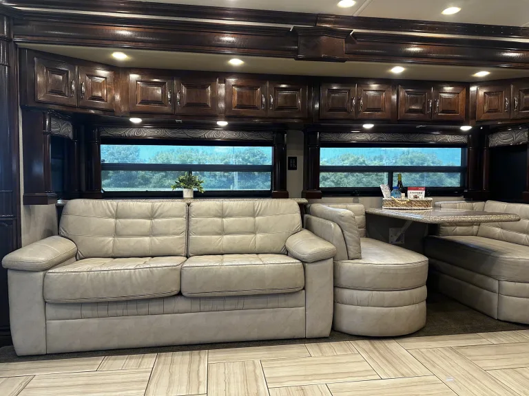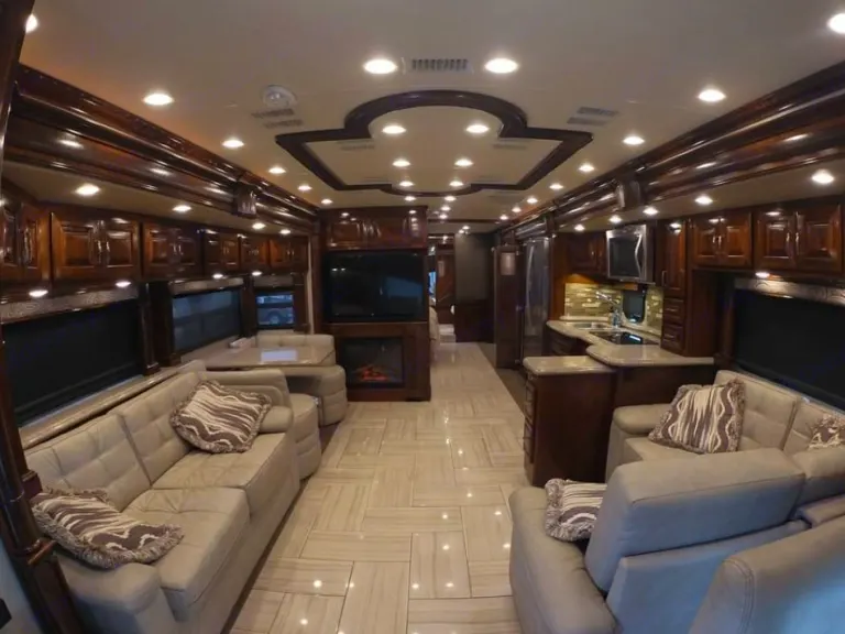 This 2017 American Revolution 42S is Luxurious!This coach is like a home on wheels.It has everything for your comfort, including a king bed, a jackknife sofa, a sofa sleeper, and a fireplace. The unit comfortably sleeps five.You will find a convection microwave, an induction stove top, a residential fridge, and a dishwasher in the kitchen area.Entertainment includes satellite readiness, a Bose sound bar, a DVD and CD player, and an Apple TV with three televisions.What's included• Everything you need to have an amazing experience: