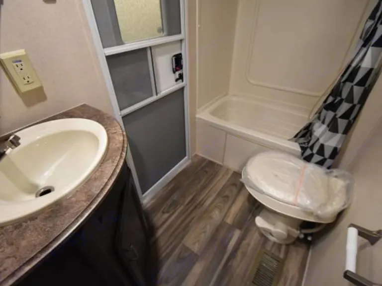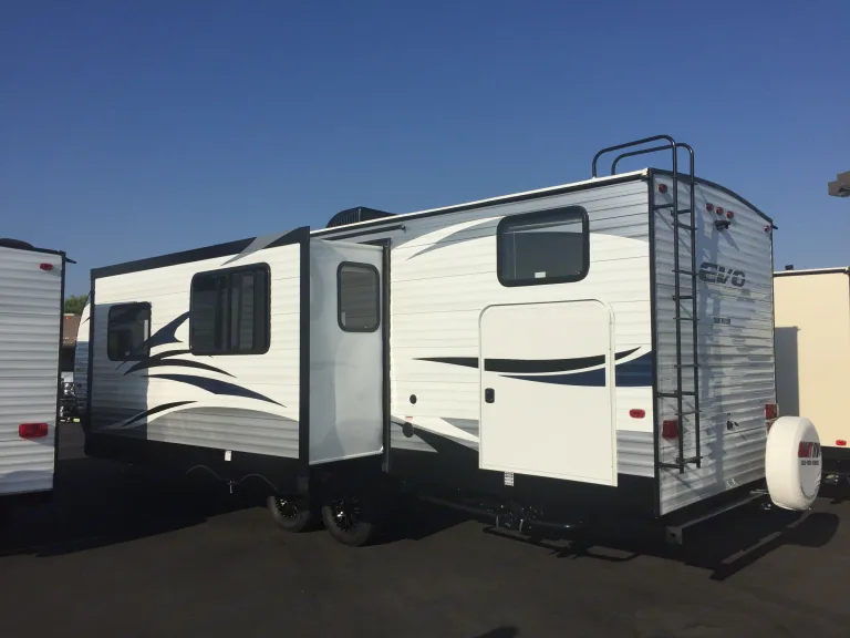 Comfortable seating and sleeping.This EVO T2700 travel trailer by Forest River features a Triple bunk lift system and dual entry which makes it easy to get to the bathroom without having to go all the way through the unit. There is also plenty of space to store your things while you are away, including dual wardrobes in the bedroom, overhead cabinetry, a wardrobe and pantry in the living area. Large led TV in living room with dvd player with speakers inside and out for music. Kitchen has a three burner cooktop with a 17" oven, spacious fridge and freezer. Large Led lit outside awning and outdoor mat for seating. With all of these amenities on the interior and the exterior, you will have plenty of standard features that will make each vacation safe and comfortable.