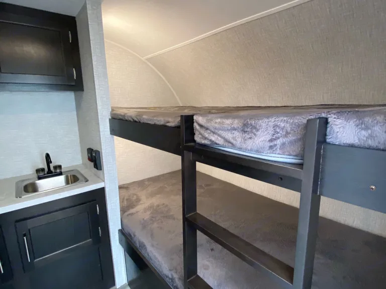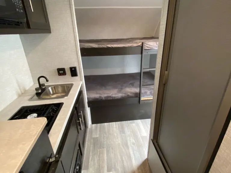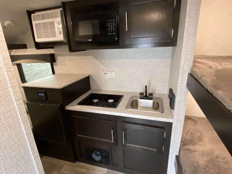This camper is a 2021 Braxton Creek Bushwacker 17BH Plus that comfortably sleeps 4. Lightweight at 2360 lbs dry and a gross weight of 3000 lbs tows with a SUV or small truck without having to deal with pop outs. Will need to have a 7 pin brake connector. Great things truly can come in small packages! Everything you need for a great weekend of camping, but won't be burdened by the weight of a huge RV. Can easily go off road.Equipped with two-burner cooktop, wet bath with shower/toilet enclosure, Bluetooth-ready stereo with speakers, A/C unit (must have electric power access), microwave, kitchen sink, and a three-way refrigerator that can run off of propane, 12V DC power, or directly from a 240V AC. Your health is important to us also, so our camper is sealed with environmentally safe Eco RV Pro on exterior and interior with MicrobeRepel products that protects from stains, orders and germs.All that's left to do is pack up your belongings and hit the road!