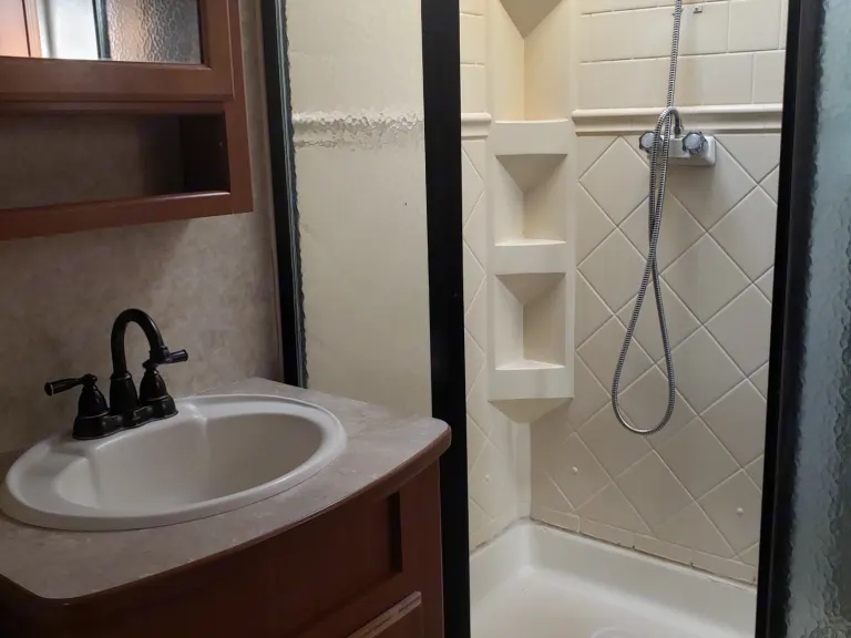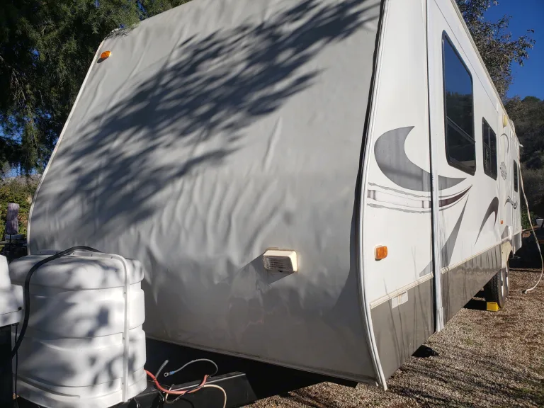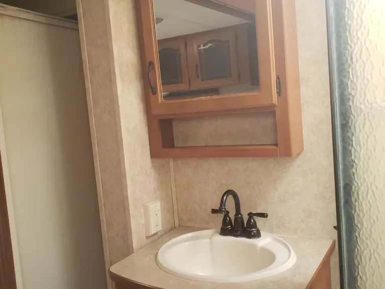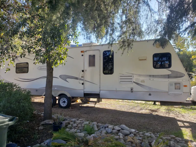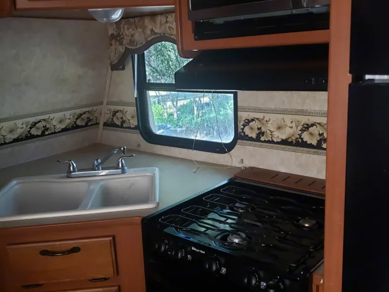 Our Mountaneer trailer is a classic with comfort. She is equipped with all the necessities for a trip. She is not the most luxurious but she has the basics you need to get away. The Bedroom has a queen bed with closet and drawers. Bathroom, shower and sink with a separator to the shared space. The coach is a two-seater recliner (seat & sleeps only 2). Dining table with 4 chairs, Kitchen includes fridge, stove, microwave and sink. Central air and heater working. We hope you enjoy your time in simple living.What's includedLinens, plates, cups, cutting board, bowls, utensils, etc.