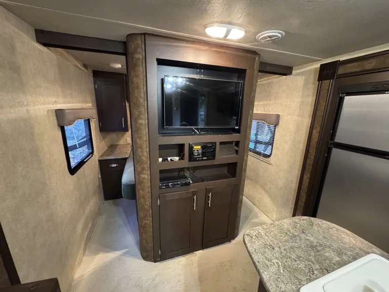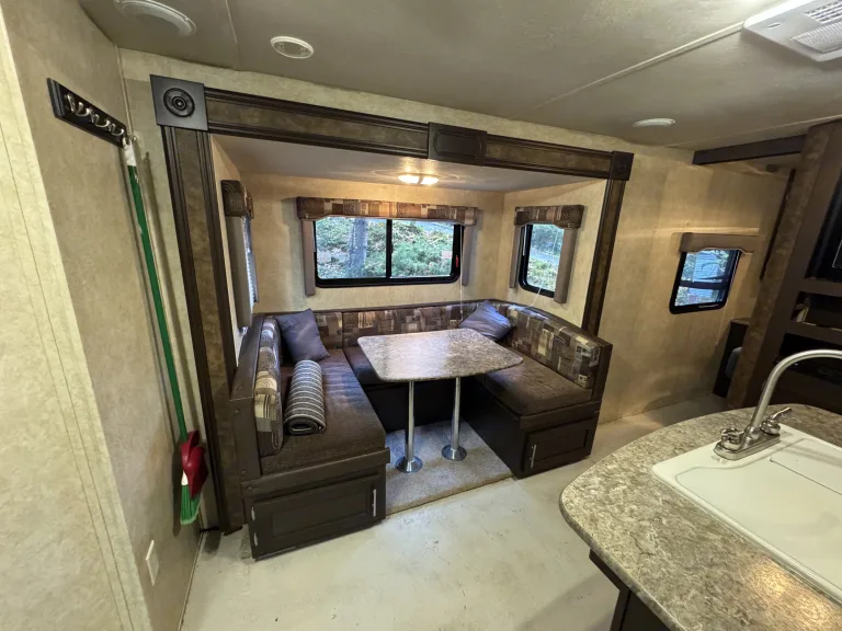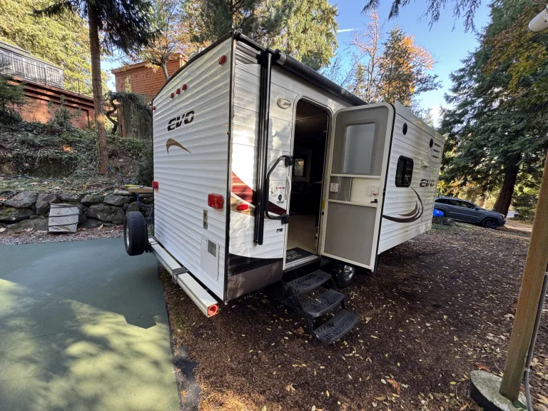 2014 Forest River EVO T2050 Double Slide-Out Travel Trailer. Equipment includes: Spare Tire, Pass Through Storage, Exterior Speakers, Battery, Auto Patio Awning, Ducted Roof A/C, Electric Front Jack, Power Stabilizer Jacks, CD Player, DVD Player, LCD TV in Living Area, Refrigerator, Oven, Microwave. The Floorplan features: Double Slide-Out, U-Shape Dinette, Private Bath, Queen Bed.