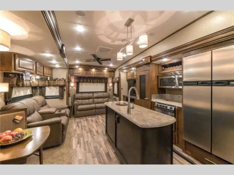 Unite has Master bedroom, second bedroom, loft plus full living room with sleeper sofa that can sleep up to 10 people (8 adults and 2 children). 4 slide outs to over 500 sq feet of living space. Full size refrigerator, stove/oven, microwave plus an island and dining table for 4 people. Second bedroom can be used as a tv room/den/playroom if wanted. Bathroom has large shower. Outside sink and small fridge and large awning. Includes 3 TVs and hookup for an outdoor TV.