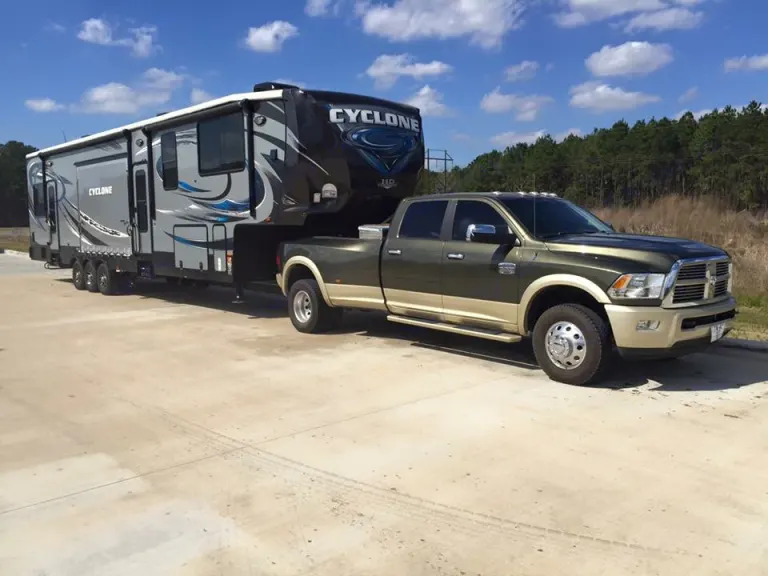 This 5th Wheel is like new.Master bedroom has an adjustable residential Queen memory foam top of the line bed, not an RV bed.Full size bed in bunk house garage, on top of 2 couches that fold into yet another full size bed.Residential full size double door stainless steel fridge.2 porches, with outdoor tv on side porch.Loft bed above kitchen for extra sleeping or storage space.Full bath in front or 5th Wheel. 3/4 bath with shower and smaller tub in garage.Note: you will need to provide your own tow truck/5th Wheel Hitch capable of pulling the Fifth Wheel or have someone tow it to your campsite and back. We no longer have the truck we towed it with. We recommend a 1 ton truck. We used a 1 ton Ram 3500.