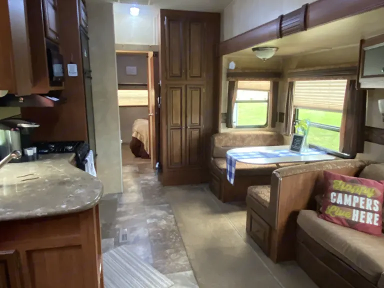 Welcome to Memories Camper Rental! Comfy & cozy describes this beautiful rig. We absolutely love it and therefore, do delivery only! Inside, you'll find everything you need to make great family memories...marshmallow roasting "sticks" and a s’more kit, pudgy pie makers, comfortable beds, pillows, plenty of blankets, electric fans to plug in, bath towels, dishes, pots & pans, cooking utensils, hot mits, electric griddle, toaster, silverware, napkins, paper towels, toilet paper, a Keurig that will make pods or a full pot, paper plates, glass wear, dish soap, cleaning supplies, built in radio, a couch where the bottom slides out to a toddler bed, stove/oven, microwave, fridge and freezer, AC, heat, carbon monoxide detector, smoke detector, fire extinguisher, toilet, shower, and plenty of storage!