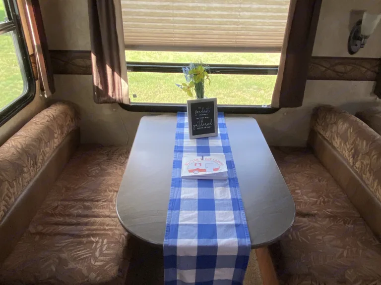 Happy camping!!What's includedBasically everything you need to camp as you can see from the description…also, fresh bedding, fresh towels and washcloths, and aired out and freshly sanitized camper between renters. RecommendationsBring food, bottled water, 1 lb gas canisters for the small gas grill, charcoal & lighter fluid for the small charcoal grill, bug spray, k-cups and/or regular coffee, toiletries, and anything else specific you would need or like. Other things to noteDelivery only & pet friendly! NO SMOKING.