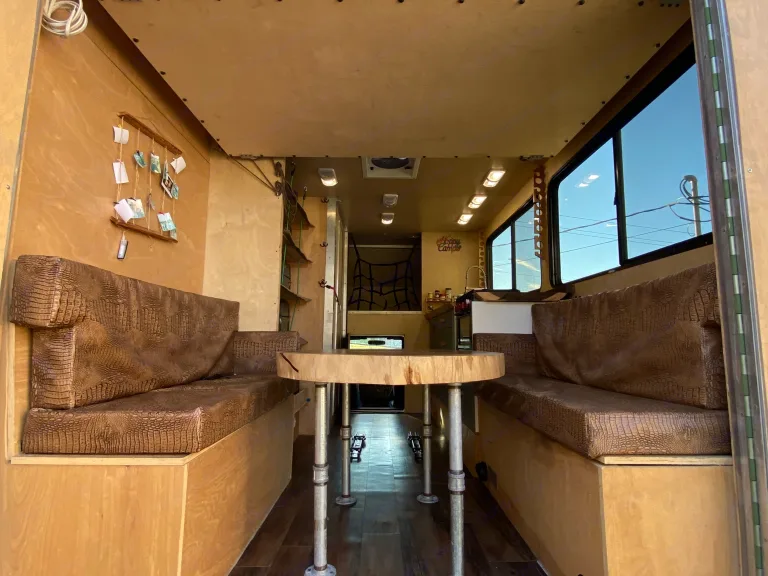 This mean green traveling machine is waiting for you to take it on its next big adventure. This is a custom built machine that I traveled the country in while living off the land. The vehicle is designed to be able to boondock for weeks at a time without needing to come out of the woods to resupply. It’s outfitted with a solar system, full bathroom, refrigerator/freezer, and a 54 gallon water tank to cover all your essential needs. The full kitchen complete with a sink, oven and stove mean you can cook and bake any meal you desire, even in the backcountry. The heater, hot water heater, and multiple ceiling fans make this camper comfortable in the subzero winter of the Rockies or the scalding heat of summer in The Keys.
