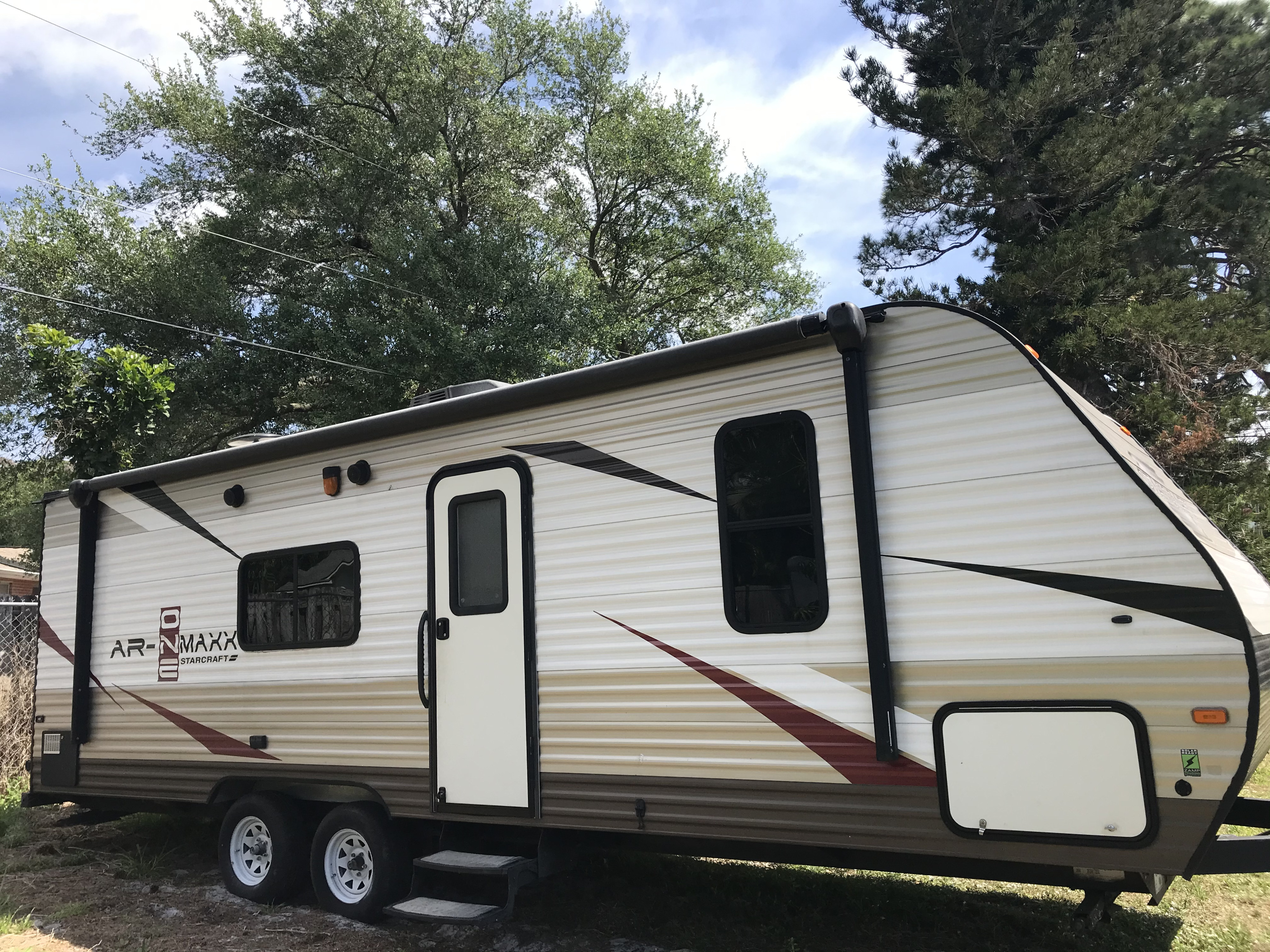 We are located near the Space center and the beaches. We are one hour away from the Orlando attractions. This is not just a camper rental business. We camp in all of our campers and are outfitted to fit our needs so we know how to make camping easy for our customers. Our campers are clean and comfortable. They are sanitized before rented out. What's includedAll campers kitchens are stocked with pots and pans, plates, silverware, coffee pot, griddle, crockpot, cups, toaster, paper towels, toilet paper, dish and hand soap, sponge and hand towel. Campers have organically washed sheets washed on highest water temperature. They are pet friendly with a 75.00 fee. If you are coming from out of town and need extras we provide for a fee. We do rent out chairs and fire pits. RecommendationsWe are close to some of the best spots in Brevard County. Longpoint, Sebastian inlet top 10 fishing spot in Florida. Jetty park on the beach, Manatee hammock on the river near the Space center, Kars park for the military and space center worker on the river. Other things to noteOur campers are smoke free of all kinds.
