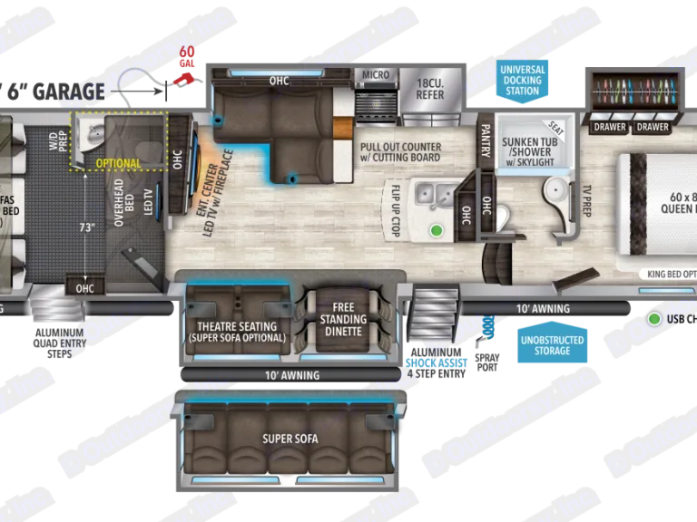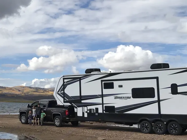Beautiful 44' toy hauler with patio gate and 1.5 bathrooms. 5500w generator. 3 AC units. Full details of a new unit are here: granddesignrv(dot)com/showroom/2019/toy-hauler/momentum/floorplans/394m. The trailer has been used, so there are cosmetic scratches from normal usage. The shower in has one of three glass panels broken that is waiting on a part. Shower works great, just looks off.What's includedIncludes 2 camping chairs, fresh linens, toiletries, cookware and utensils. Delivery and pickup within 100 miles of Phoenix available upon request, for a $100 fee. It's a large trailer, perfect for families. Keep the size in mind when determining where you'll take your next adventure.RecommendationsCan be used for dry camping or with full hookups. Our family of 6 traveled the east coast with it and it's an incredible experience to get closer family and nature. Use it as a base camp for your next great memory.Other things to noteKeep the 44' size in mind when determining where you'll take your next adventure. Note, there is some internal cosmetic damage, everything works great, but a couple things aren’t ideal. Missing one of three pieces of glass on the shower door. Shower works perfect, just uses a curtain for that small piece.