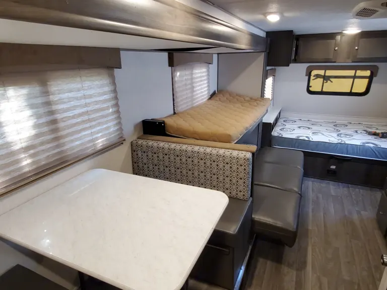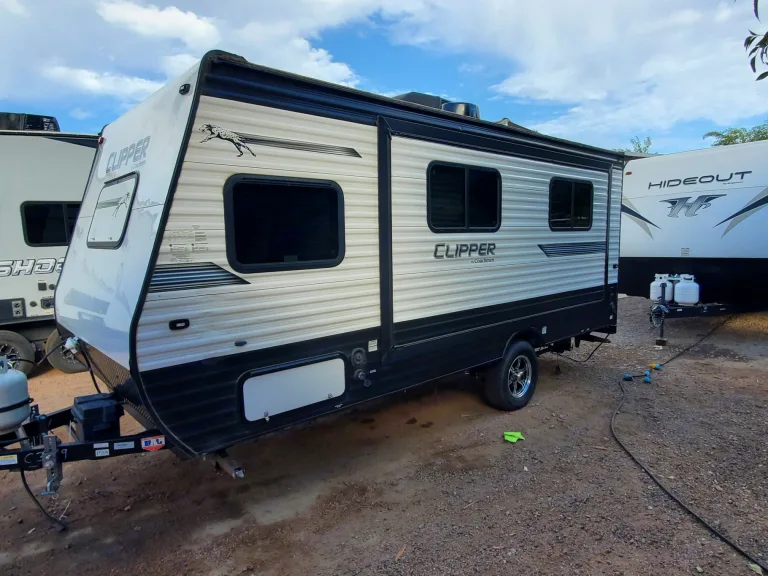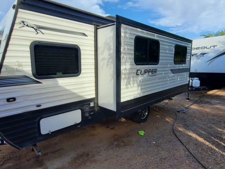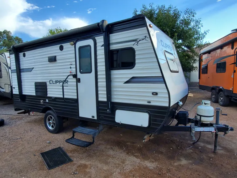 2018 Coachmen Clipper 18 rbss. This is a rear bathroom super slide lightweight trailer. Full size front bed great for two people. It has a bunk bed that retracts and extends with a button and this trailer will sleep 6-7. This has a large 13-ft slide that really opens up the floor plan. Couch and dinette convert to bed. Full size bathroom. Spacious kitchen with full size refrigerator. AC and heat furnace. 12 ft Electric awning. Electric tongue jack. Bluetooth stereo indoor outdoor speakers. Weight distribution hitch and Generator available. Damage deposit required. Three night minimum requirement special event pricing may vary