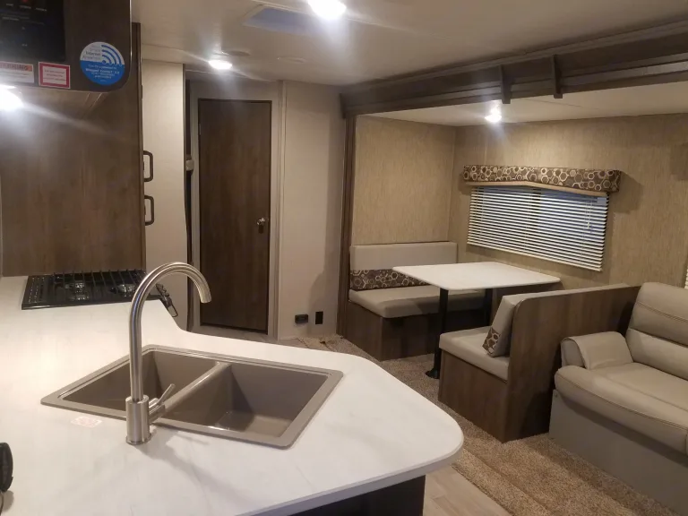 Spacious Lantern trailer, perfect for a small family to jump in and explore! All amenities included, with a full bathroom and kitchen! You and your family will drive each other crazy, but do it comfortably in this trailer.