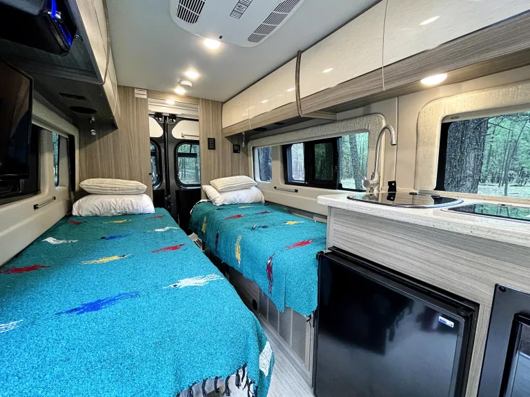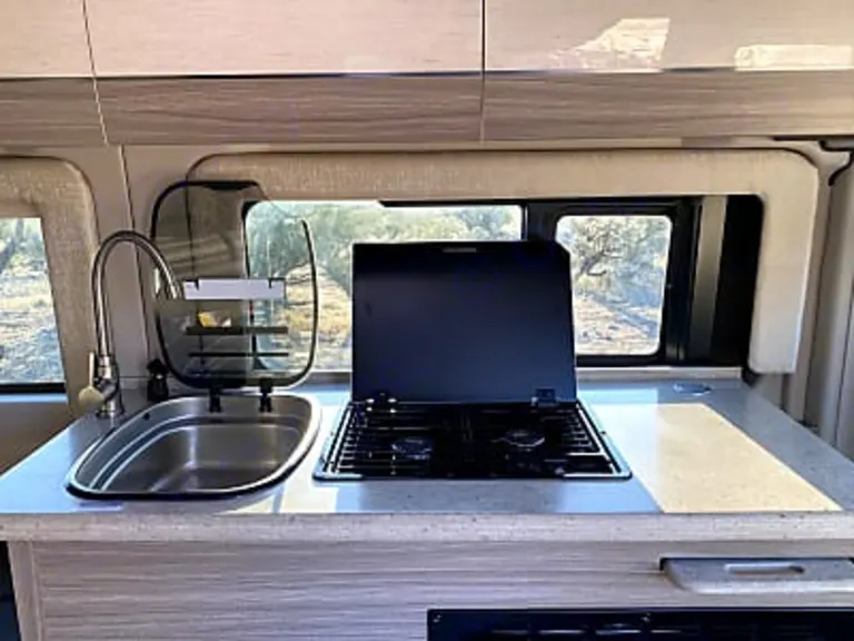 Hello, welcome to our easy to drive, maneuverable, super fun, 21 foot Class B camper van. This is the perfect RV for your next adventure! Just load your linens, clothes, food, and hit the road! This luxury RV sleeps 2 adults comfortably with the two twin bed configuration but can also be converted to a king size bed. Ready for off the grid stays or full hookup RV travel. We can fully stock the motorhome with kitchen supplies and linens if you are flying in or just want to leave the prep and packing to someone else, just let us know!**This RV is a low clearance vehicle and is not suitable for off-road adventuring. Paved roads only, please.Price Includes: