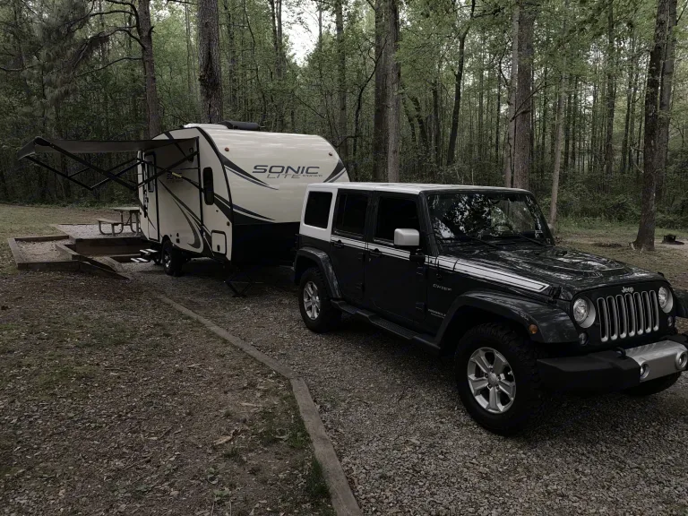 This 21ft 2019 Venture Sonice Lite camper is luxury in a small package. The one slideout allows for a large dining space with U-shape bench seating. Relax inside on the hot days or cool nights with more than enough power from the built in heating and A/C units. While relaxing inside, the HD TV can swivel from the master sleeping section out to the living section to kick back and watch the tube. Simulation marble countertops throughout and upgraded cabinetry give a big luxury feel in a small package. Convection microwave/oven and 2 top gas burner let you cook real meals on the go. Long day on the trip? Take a soak in the half tub/shower combo. Coming in from the beach? Shower off outside with the built-in outdoor shower. If you're really adventurous, go full off grid with large water tanks and full solar power. While lounging in the sun, play some tunes on the full indoor/outdoor surround system via Bluetooth, USB, Radio, or CD. Truly, everything you need is in this little package. This easy to tow rig maxes out at 4000 lbs making it easy to pull by mid size and larger SUV's, trucks, and crossovers. Anti-sway hitch available for towing needs.What's included1 Set of Fresh Queen linens and comforter