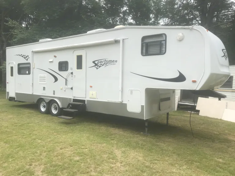 2006, 33 ft KZ sportsmen sportster. Sleeps 6-8. Front master bedroom, king size loft bed. Sofa and dinette convert to beds as well . Garage can fit large atv, motorcycle or make it into whatever you want. Garage also has screen door and private side entrance. Great for whole family . A/c, heat, full kitchen, full bath. All fiberglass body, fully self contained , fuel station.