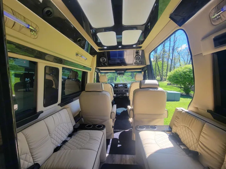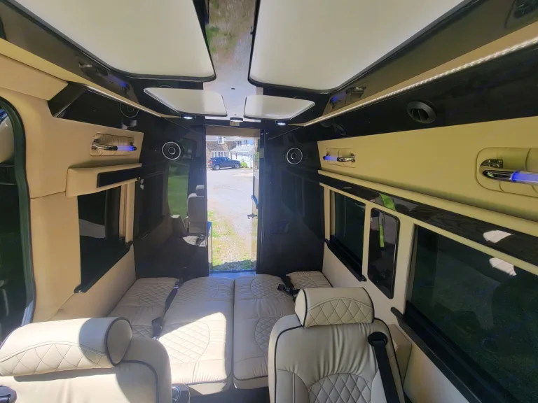This van is equipped with everything you need to make a long trip easy, relaxing, enjoyable and beyond comfortable. This luxury van has 2 tv's, a built in wifi unit, bluetooth audio, back up cameras, 4 ultra comfortable bucket seats, 2 bench seats that fold into a bed if feeling tired. A 1/2 bathroom in the back. Also if you need extra luggage we can provide a luggage rack that goes into the hitch behind allowing more space in the van.