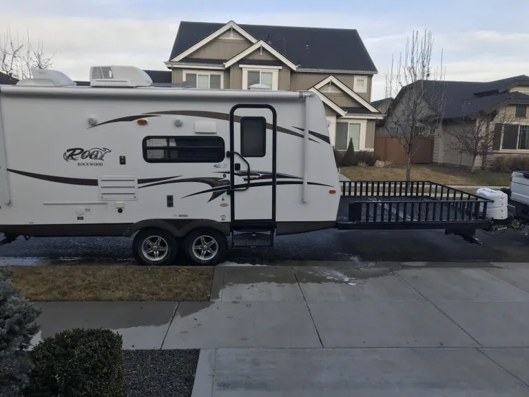2014 Rockwood Roo Toy Hauler. This camper has it all. Front 8x8 deck for hauling toys, large slide out, heated mattresses, A/C and heater. New tires and very lightweight. Power Awning, TV and Bluetooth speakers. Also has LED lights around the bottom of the camper.