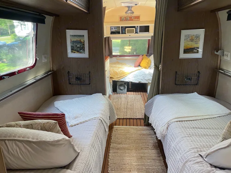 No truck needed! We drive, you arrive! Come experience camping in style in our airstream "Gleam" which has been updated with many modern features. She has blazing cold air conditioning, 2 adjustable maxxair ceiling fans, led recessed lighting, refrigerator/freezer, retro microwave, new Furrion oven/stove, coffee maker, Bluetooth speaker, led tv with omni directional antenna, blue ray DVD player, 2 single beds & dining area which converts into a full size bed, kitchen area and a wet bath which has a Nature's Head composting toilet. Also a newly installed 25 gallon grey water holding tank and 400 watts of solar with 276 amp hour lithium batteries. We deliver up to 100 miles round trip. 50 miles there and 50 miles back. $1.75 a mile after that. $150 minimum for setup and breakdown and $100 cleaning fee added. Delivery location must have easy accessibility to accommodate a 23ft trailer and 14ft tow vehicle. No overhangs, ruts, muddy locations, low hanging branches. Will deliver further if rental is 5 or more nights long. (Also note that if boondocking or if there's no waste hook-ups, water tank will only be filled to 20 gallons, our grey tanks can only hold up to 25 gallons)What's includedAirstream usually comes with fresh linens, towels, pillows but due to Covid we find that people prefer to bring their own bedding. Please let us know if you want linens, towels, blankets and pillows.RecommendationsAsk about pets, some exceptions. :)Other things to noteDelivery only within 100 mile radius. 50 miles there and 50 miles back. Fee added to checkout.