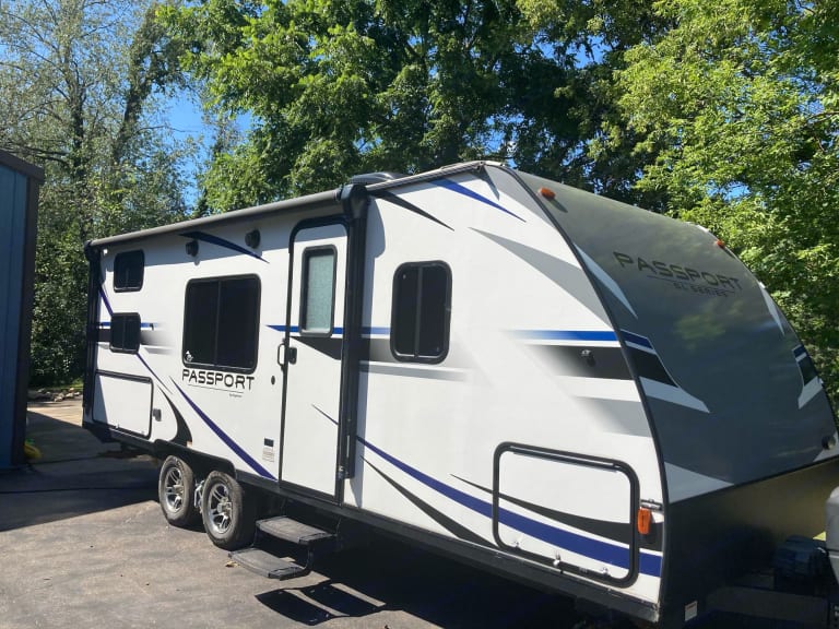 Thank you for considering us in your camping adventure. This is a beautifully maintained 26 ft camper with no slides. You can comfortably sleep 5 adults. Queen bed, bunk house & dinette converts for sleep. Bunk house and queen bed come accessible with privacy curtain.Inside bathroom equipped with tub that is perfect for bathing kids & also a shower with removable shower head. Medicine cabinet for storage & we provide appropriate toilet paper.Kitchen comes fully stocked with all cooking needs - cutting board and cooking knives, kitchen utensils, bowls (4), plates (4) & cups (4). Fridge/freezer, stove, microwave and sink.