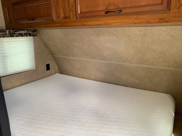 Cozy and convenient, this little camper that we added in 2021 will sleep 4 but is best suited for couples wanting to get away. It's smaller size makes it easier for towing or parking at smaller camp sites but it doesn't give up any comfort or conveniences. The bed is an upgraded full size memory foam mattress for a great night sleep. The privacy curtain is nice for keeping out the dog or for when one of you wakes up sooner than the other. The dinette area is spacious and also converts into bed large enough for a couple of kids or another grown up needing to crash. The bathroom has a decent size shower and the kitchen setup allows you to cook your meals inside or use our portable grill setup outside under the awning. With A/C, heater, hot water, microwave, and stove, you will no longer be roughing it in the woods. The camper comes with dinner ware and cups, and some common use items like TP, paper towels, trash bags, but if you'll be using it for a week or longer you'll need to plan on supplying those things. You'll need to bring your own bedding sheets/blankets/pillows. We can provide some fun add-ons for an extra charge. This is our personal camper and we do keep some of our personal items in the camper. Most things are common use and we don't mind sharing. I can deliver and setup the camper to the campground of your choice or if you have a vehicle capable of towing you're free to roam. The delivery fee is based on distance from Milford, NH but is a minimum of $135 (adjusted Mar 2022 due to gas prices). Delivery/setup to campgrounds further than 60 miles from Milford, NH require a minimum of 3 nights rental. NO drycamping/boondocking and sites Must have septic or on-site dump station if you plan to use the bathroom or sinks ($20 fee for me to dump on-site).What's includedWe provide a few things like dishes, cookware, utensils, cups, some TP and a few trash bags. A blanket is provided for the bed but you will need to bring your own pillows and sheets. You should plan on bringing all the personal care items that you would plan to bring on a camping trip.Add-ons like kayaks, tent, and easy-up are available for additional charge. Delivery/Setup/Pickup is available and charged based on mileage.RecommendationsCold Springs and Autumn Hills (Weare, NH) are nice local campgrounds we have been to. We also go camping at Papoose Pond (North Waterford, ME) every summer which is a favorite.Other things to noteCAMPGROUNDS ONLY! Due to past issues, we no longer allow rental on private property. Renters are responsible for any damages to the camper. Renters are responsible for emptying the grey/black water tanks before pickup ($20 fee for me to dump on-site). Pets are welcome. We have 2 dogs who love to camp and the dinette area is a comfy spot for them. Absolutely no smoking is allowed in the camper. Also if you do smoke outside, be mindful that your clothes carry smoke and can make the the camper smell. A cleaning fee of $120 will be taken from the security deposit if there are smells from smoking. Also, camp grounds only, no festivals or parties.