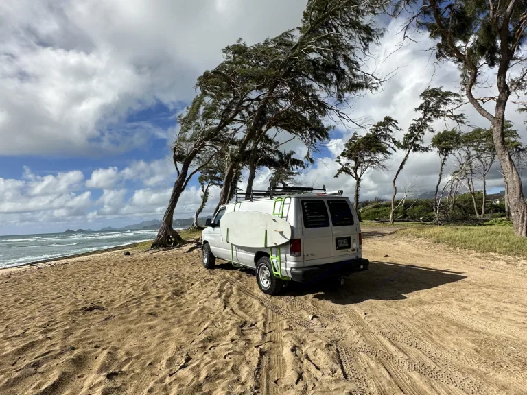 Cruise the islands and park and enjoy the experiences Hawai’i has to offer with total comfort. There are a lot of locations around the Island to camp and park. Please don’t hesitate to ask.What's includedFresh sheets and pillows/ Cooler/ paddle board /boogie boards/ portable stove/ we can customize accessories.RecommendationsFind a location to park for the night dirt.com