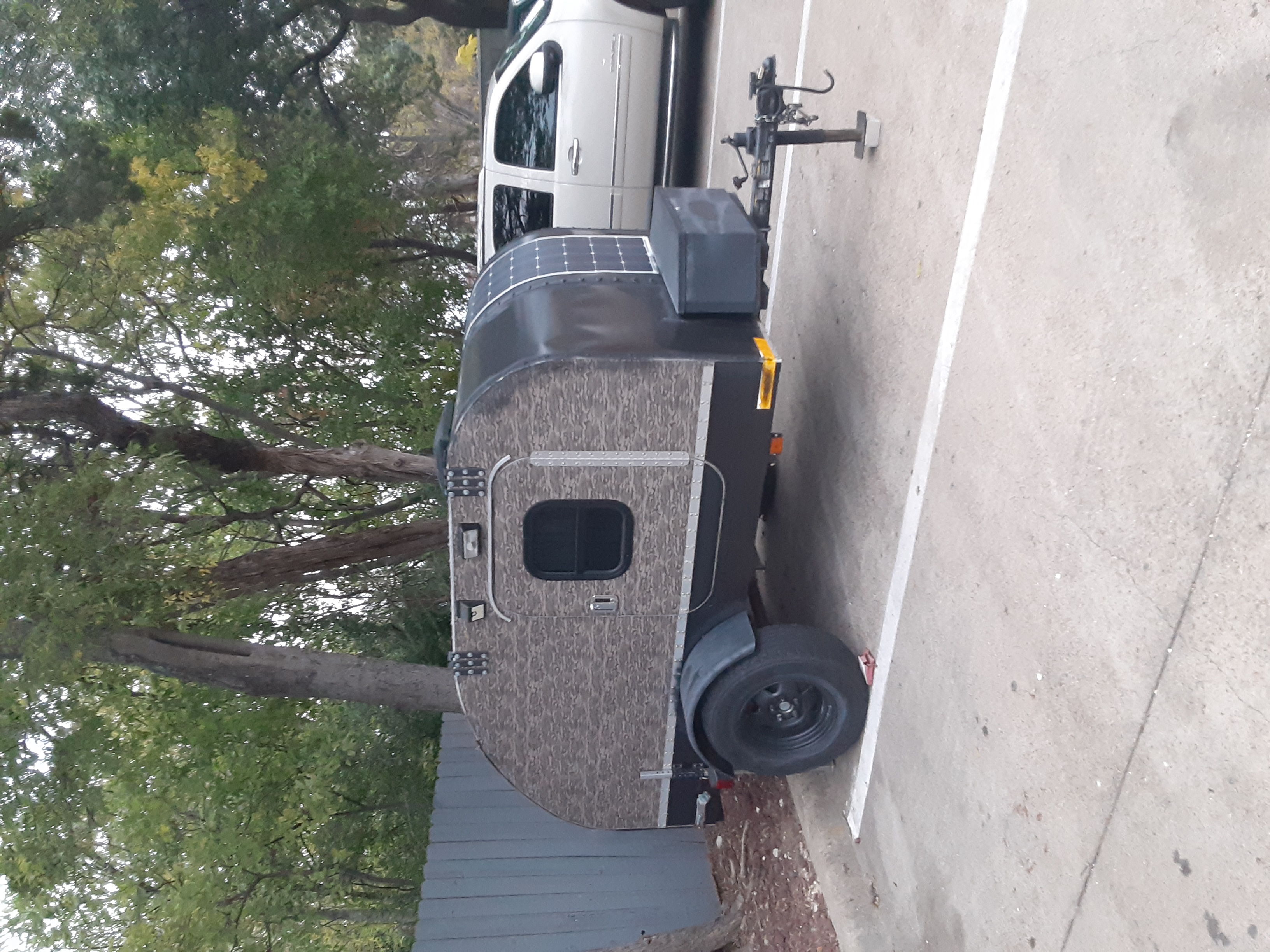 A light weight 16 ft toy hauler. Easily pulled by a 2 door Jeep Wrangler. Has bathrm w toilet and shower. Kitchen w propane stove & sink. 2 twin XL beds to fold up and out the way for your outdoor toys while in tow. Sleeps 4-6 adults/kids