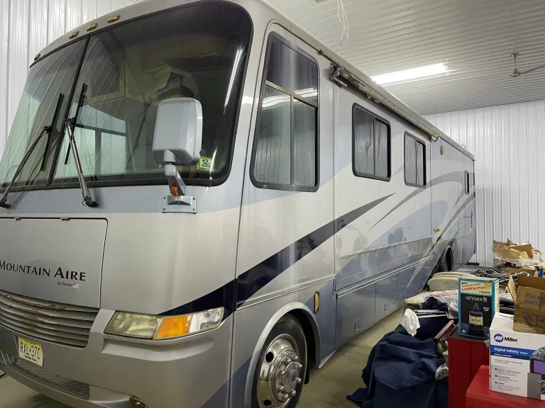 2002 38' Newmar Mountain Aire. It comes equipped with a bathroom, kitchen with a cooktop, and a convection microwave oven. It has a queen bed, slide-out queen bed, convertible dinette. Rv can sleep up to 6 people. Includes 2 slides
