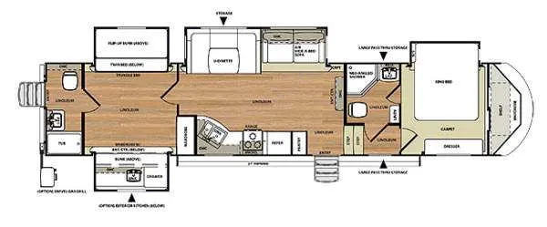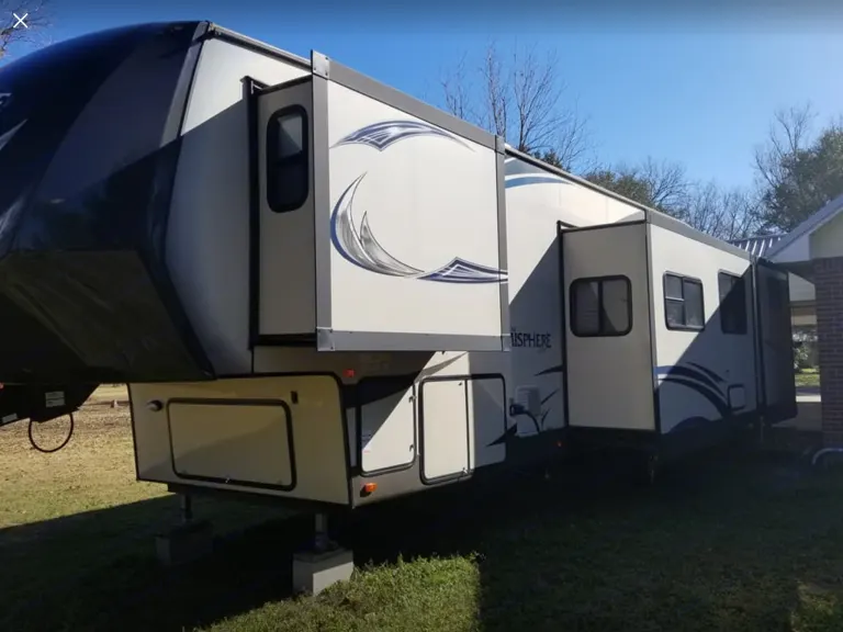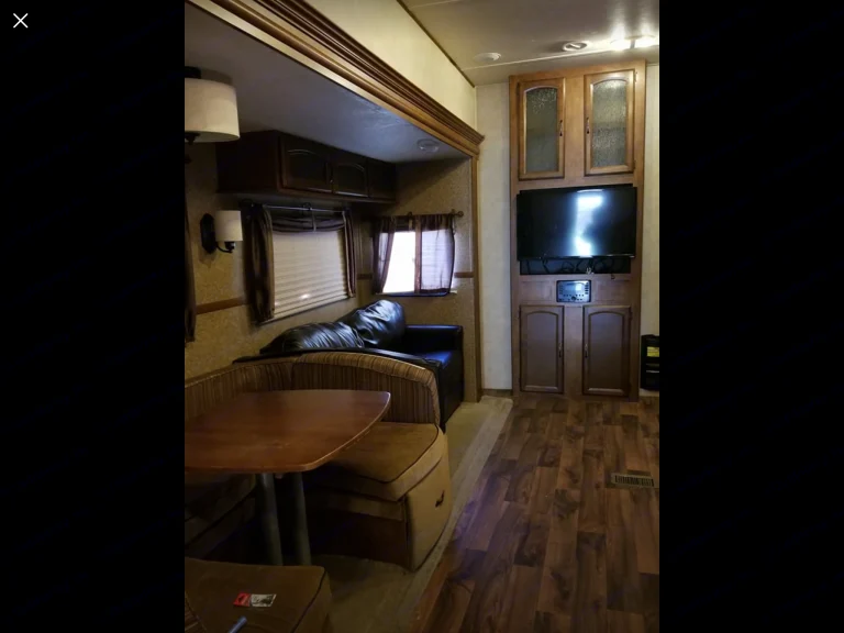 Great Conditon. 5th Wheel has been converted to gooseneck with long trailer connection cord for in-bed or bumper connection options. Remote Control set up from inside or out on all slides, awning, outside LED lighting, landing gear and stabilizers. Outdoor kitchen with grill refrigerator and television hook up. Second full bathroom in rear with access from outside. Rear bunkhouse with entertainment center and lots of storage.