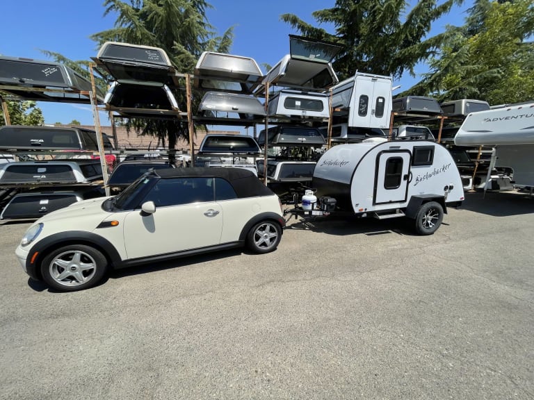 Brand new teardrop. Extra comfortable Purple brand mattress. Bluetooth speakers, storage, ice cold AC.1300 lbs. can be towed by any car. Other things to noteI towed this with my Mini Cooper from California.