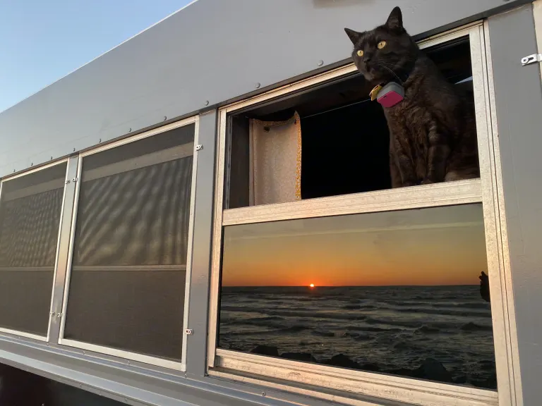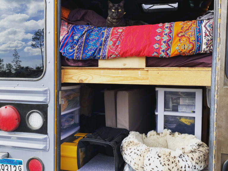 We took our Skoolie, along with the cat, to the Gulf of Mexico for 4 months during winter of 2021 when we had the opportunity to work remotely during the pandemic. Full-time tiny living/nomad life had some unique and rewarding challenges, as we fully embraced the simplicity and flexibility of life on the road. I can't wait to get out there again!