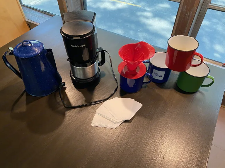 -4 cup Cuisinart coffee maker with filters (electric), or 2 cup pour-over alternative