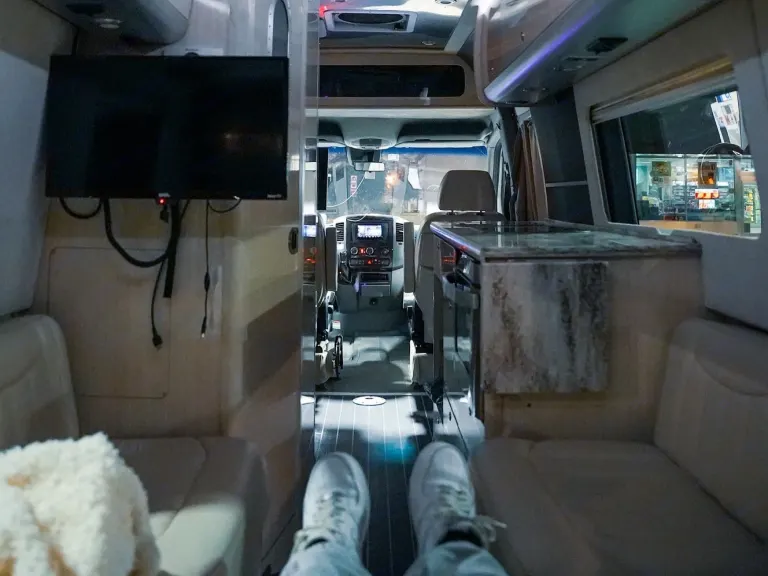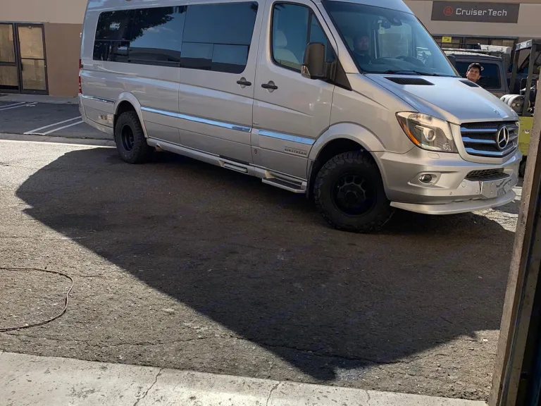 Omni is meant for the adventure seeker who also wants to travel in style. It’s a penthouse for ski bums. This van has gone from Newport Beach California to sunshine lake in AB. Has seen 6ft pow days in mammoth and handles fantastic. Omni is equipped with 5GT LTE Verizon Wi-Fi.(I WFH in places like Yosemite, snowbird, moab was able to take calls and send emails full time 50 hours a week for a year. internet 10/10 reliability.) 2 satellite tv, Netflix, Hulu etc. kitchen, full shower, diseal heater. Diesel engine. Generator, microwaves, solar panels, 2 house AMG battery’s. Seats 7 including driver. Queen Size bed. We have slept 4. (Also includes Snow chains flares safety equipment etc) 2016 Mercedes Sprinter 3500 Lifted Fox shocks Method rims leafy spring suspension. BFGoodrich Off-road tires.
