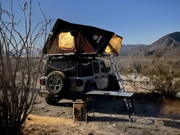 Looking to get off the grid or just want to sleep off the ground? 4x4 Jeep Wrangler with an ikamper 2.0 roof top tent. Comfortably sleeps 3 adults or 2 adults and 2 kids. Also included is a camping table, artic cooler, little buddy heater (if needed). Camping chairs and a portable grille can also be included as well.Please stick to forest roads. No rock crawling.What's includedCamping table, and coolerRecommendationsAlabama hills, yellow post sites in big bear, the many forest service roads or BLM land near Mammoth.