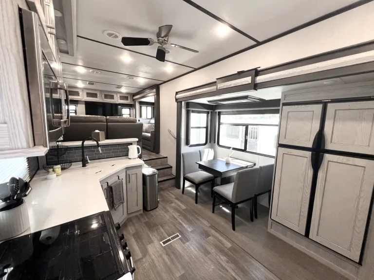 Experience Luxury on the Road!Are you ready for an unforgettable adventure? In our 2021 Montana High Country Fifth Wheel Trailer and vacation in style and comfort. This top-of-the-line RV is perfect for family vacations, or a cozy getaway.All the essentials are included for the kitchen, bathroom (towels & TP), and bedroom (sheets). The full list below has everything this trailer has to offer. You just need to pack your food/drink, clothes, and toiletries, and you are all set.Trailer delivery to nearby campsites and RV parks for an additional fee. Please contact for details regarding delivery.Minimum 2 Day Rental - Boots and Hearts- available for power sites only.Long Weekends Minimum 3 Day Rental50 amp service sites are needed to use all the bells and whistles, 30 amp service sites can be used as well but it limits what all can be running at one time.Features: