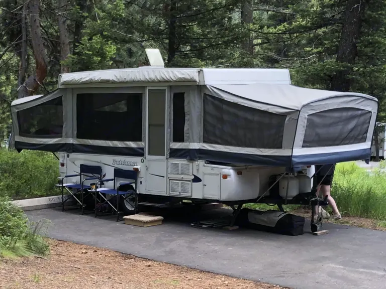Enjoy all Western Montana has to offer in this spacious pop up camper. Easy and compact for towing but unfolds to sleep 6-8. King and queen bunks with comfortable 4 inch foam mattresses. Two seating areas with tables convert to sleeping areas. 3 burner propane stove can be used inside or outside. Propane heat for chilly mornings. Double propane tanks will keep you covered throughout your trip. Unzip all the flaps on sunny days or zip up to keep cozy warm and dry through a rain storm. Full canopy provides extra shade and shelter. What's includedChocks and blocks for set up. Two full propane tanks and fully charged 12v battery.