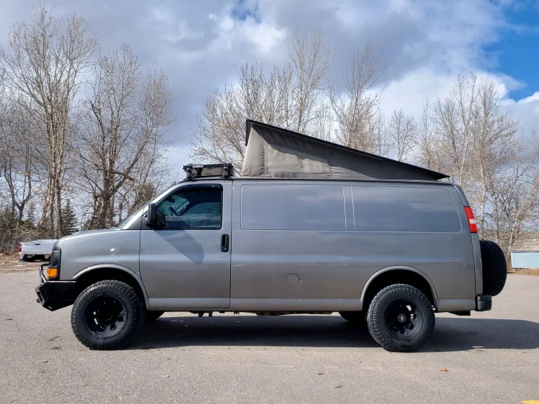 2012 Chevrolet Express 4X4, Pop-top, Queen foam mattress. Basic Amenities.