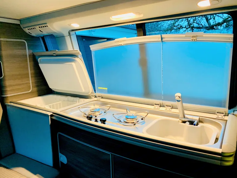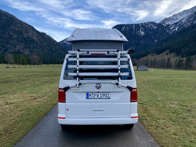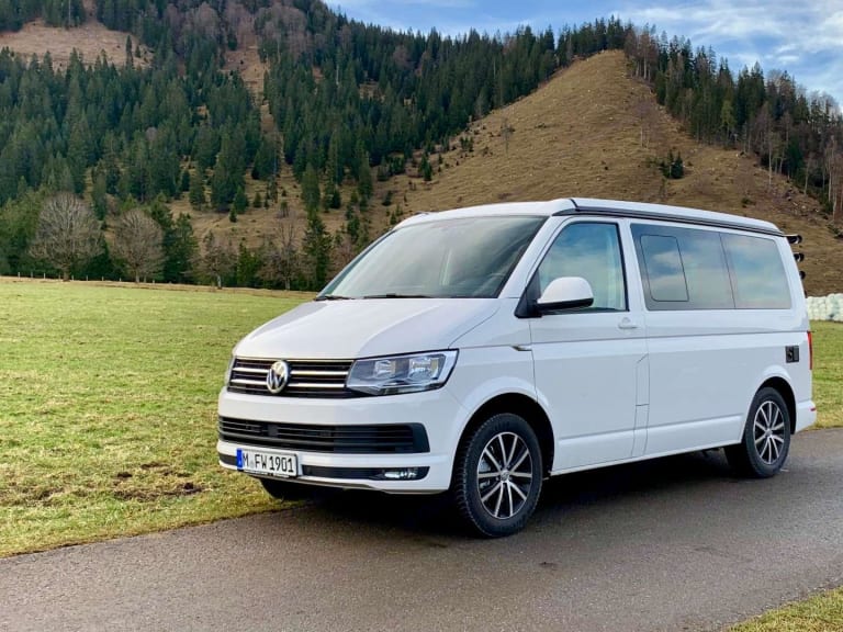Unser VW T6.1 California Ocean ist ein kompakter Allrounder mit höchstem Schlaf-, Wohn- und Fahrkomfort. Er bietet Platz für bis zu 4 Personen (4 Sitzplätze, 4 Schlafplätze), entspricht den neuesten Komfort-, Umwelt- und Sicherheitsstandards, ist vollausgestattet und macht jede Reise zum unvergesslichen Erlebnis.Innenaustattung: Küche inkl. Küchenausstattung (Töpfe, Geschirr, Besteck etc.), 2-Stellen Gaskocher, Waschbecken, Kühlschrank, Innenraumtisch, großzügige Verstaumöglichkeiten, drehbare Frontsitze, elektrohydraulisches Aufstelldach mit Panoramadach, Spannbetttücher, Standheizung, Verdunklung an allen Fenstern, Steckdosen (230V und 12V)Fahrkomfort und Sicherheit: Multimedia-System im Fahrerbereich, APP-Connect für Android und iOS, Leder-Multifunktionslenkrad, Automatikgetriebe, ABS, Abstandsregeltempomat (ACC), ESP, City-Notbremsfunktion, Einparkassistent, Rückfahrkamera, Reifendruckkontrolle, Feuerlöscher, Rauchwarnmelder, GaswarnmelderAuf Wunsch sind weitere Features dazubuchbar wie z.B. zusätzliche Außenstühle, mobiles Camping-WC, Bettdecken, Kissen, Handtücher etc.Außenausstattung: Außenmarkise, Außentisch, zwei Stühle, Heck-Fahrradträger für 4 Fahrräder, Kabeltrommel, AuffahrtkeileVersicherung: Vollkaskoversicherung mit 1.500 € Selbstbehalt. Zusatzversicherung individuell zubuchbar.Mietbedingungen siehe AGB´s: