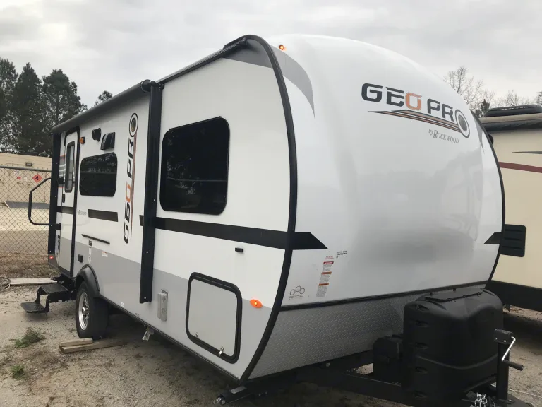 New, light weight camper perfect for the adventurous couple or family with a small child. Camper is brand new. Has only been camped in once since purchase.The Rockwood Geo Pro line of travel trailers are for those campers that value being environmentally conscious and have chosen to drive today’s more fuel efficient “crossover” vehicles and smaller SUVs. With floor plans that weigh within the towing capacity of these type of vehicles, the Geo Pro combines a traditional approach with modern amenities to enhance your camping experience.The Geo Pro has gone to the next level with its refreshing two tone fiberglass exterior, modern touches like LED exterior lights, available roof mount flexible solar panel system, and distinctive décors with Euro style cabinets. The Geo Pro…. an exciting new way to go camping with the vehicle you drive every day.Learn more at