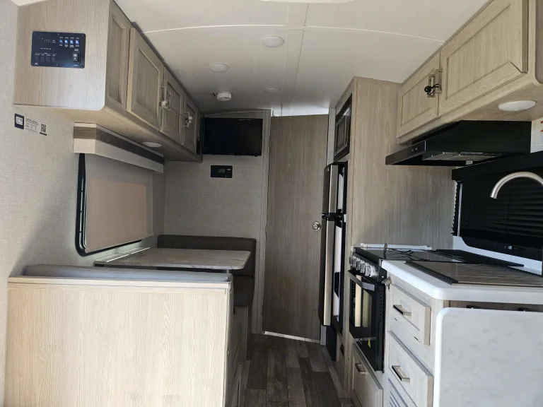 The perfect set up for two! Spent a week at Fort Stevens State Park and this trailer exceeded my expectations. We selected delivery to our campsite. Nathan set everything up and walked me through it. The murphy bed was easy to use and allowed more space when closed up - including recliners! What a treat to have a seating area to relax in while camping that wasn't the dining table. Nathan fully stocked the trailer with everything we needed including bedding, towels, a well-equipped kitchen, and even camp chairs and marshmallow sticks. Highly recommend this trailer and Nathan.