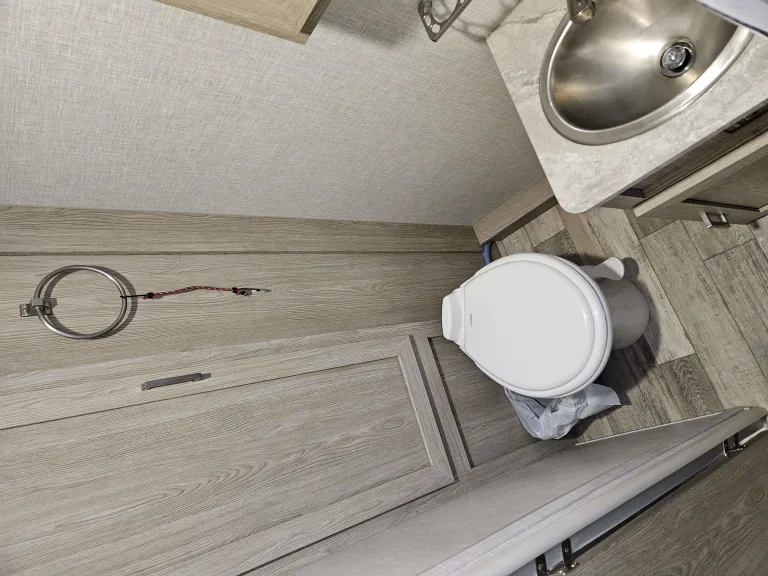 • Do not flush anything other than toilet paper and what comes out of you down the toilet in the trailer.