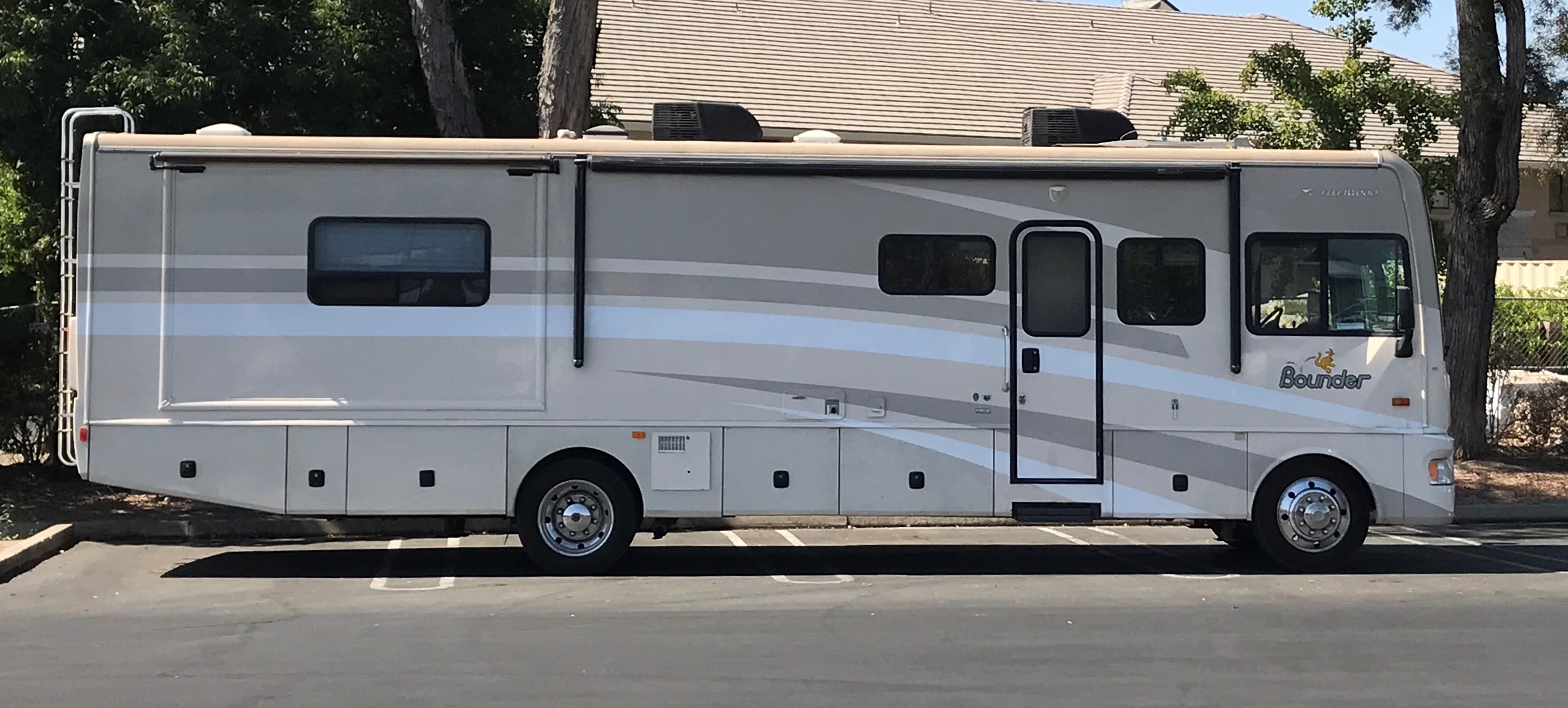 2008 Fleetwood Bounder 35E. unique floor plan with large shower in rear. front & rear A/C, electric Awning. Large living room/dining room slide out. bedroom slide out. Delivery, set up & pick up available for additional charge depending on distance.