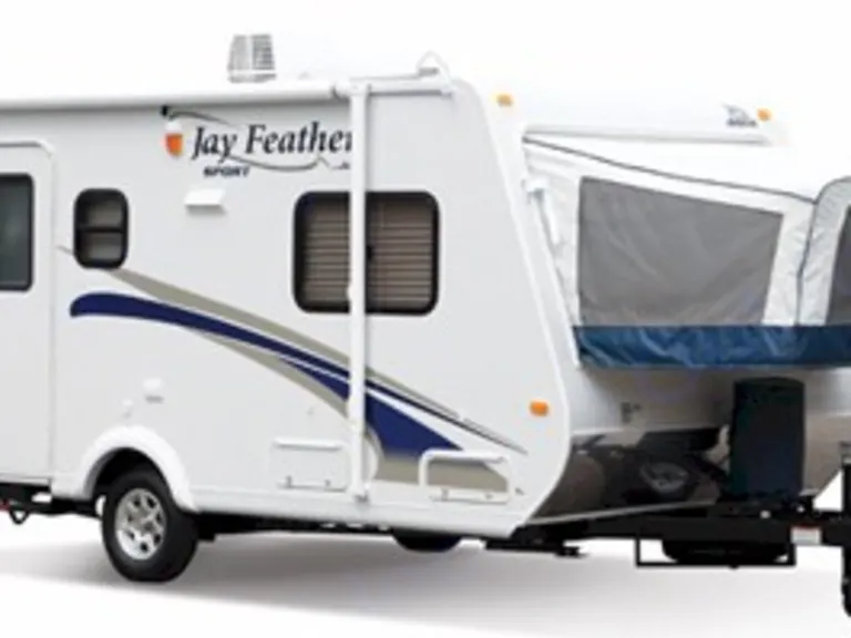 2011 Jayco Jay Feather Hybrid. Can sleep up to 8 people in a compact light weight trailer, due to the foldout full size bed on each end.