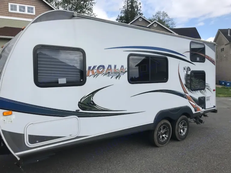Best little 18-footer you can find! Fits in all those state campground spaces, yet comfortably accommodates 4 easily plus a furry friend if you have one. This is one of the most well laid out small trailers you will ever see! Full-sized bed on one end with privacy screen, Tv, stereo/DVD player, storage and closet space. On the other end are two full bunk bed for the kiddos, kitchen with microwave and refrigerator. Dining table seats four comfortably and doubles as storage. Bathroom includes shower. Outdoor speakers and shower, electric awning complete the package. The kitchen table area converts to another bed.But wait! There's more. Unlike other trailers, ours comes 100% stocked with all the items you need to make your trip great. We have chairs, plates, glasses, pots and pans, games, movies, pantry essentials, bedding - everything. Just bring food and clothes!We do request renters have an electronic brake controller installed prior to renting.