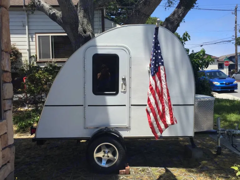 2017 custom teardrop trailer, 4x8ft, can be pulled by anything, couch that pulls out to a bed (sleeps 2), upholstered memory foam, solar power with household 110 outlets including usb, two burner gas stove, running water, on demand hot water heater with adjustments, indoor shower, shower head can be used outdoors on the mount, 40 gallon water fresh water storage, fresh water hose hookup, compost toilet that can be used in the shower, 30 minute water timer for the water pump, 3 locks on the door, locking front storage, 3 cabinets for storage, 3 basket shelves, sink with hot and cold running water, propane heater, vent with fan, propane tank, deep cell battery, spare tire, battery maintainer/charger, power inverter, insulated (see picture during construction), tongue jack, compact with every space utilized, completely self sufficient.