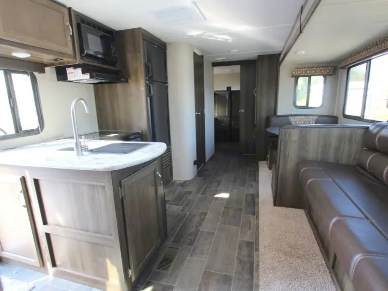 "The Cozy Camper" as we call it, is a home on the road. It is easy to tow, and connects to vehicle's with ease. The Master Bedroom has a queen-short bed and two sliding doors to give you privacy. The living area slides out, providing a soft faux leather couch, as well a dinette eating area for four. Binge watch your favorite shows on the 32'' TV, or keep the tube off and enjoy the radio and conversation. The back area has 4 bunk beds (with railings for the little ones) and a sliding door for additional privacy. Kitchen has generous size sink, and a friendly cooking area, ran on propane gas (two tanks for your trip needs!) Don't worry about packing linens & blankets, we have those for you. Although we offer pillows, we know how precious your own pillow can be, so we suggest bringing extra pillows for maximum comfort. Use our outdoor dining space (if the weather permits), with a large automatic awning, and an outdoor cooking area with slide-out grill & mini fridge...bring your own outdoor chairs, but feel free to use our dining sets, kitchenware and cooking utensils!*Cozy Camper Rental Requirements*For dry camping with a generator (not provided) or RV parks with full hook-ups, Only. Requires 30amp plug-in compatibility. Renter must have access to immediate dump site, as traveling with full water and sewage tanks is very dangerous, and we care about our renters safety!