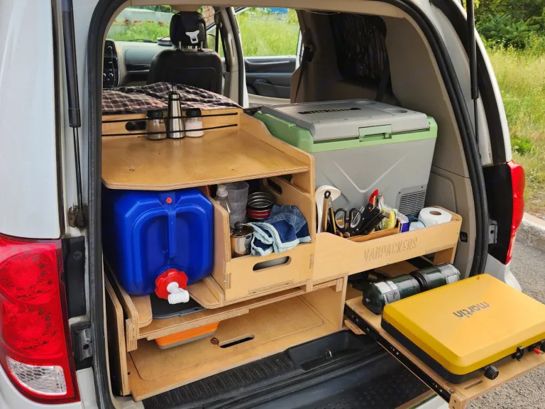 Salut aventurier·e ! Prêt·e pour un road trip inoubliable ? Monte à bord de ce van entièrement équipé avec le kit Vanpackers — ton cocon mobile pour découvrir les merveilles du Canada.Un intérieur cosy et pratique. Ce van ultra fonctionnel se transforme en un vrai petit nid douillet :
