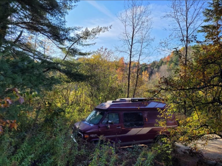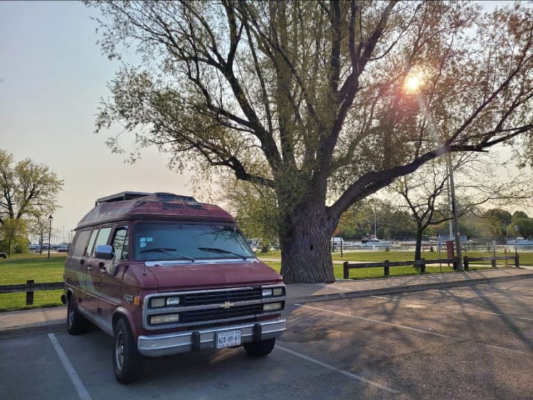 This Chevy Van G20 1993 is adapted for 2 person, in a way to enjoy the 3 Canadian seasons, and enable a full autonomy (electricity, water) thanks to its PV system.Electricity