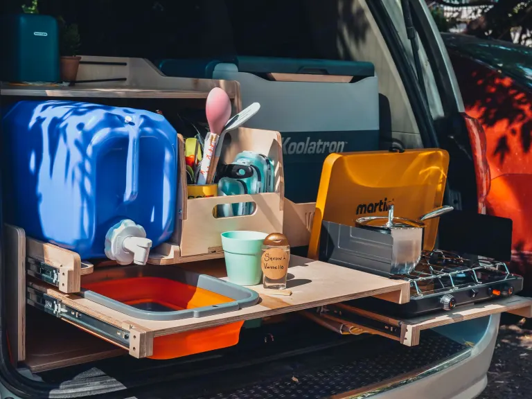 • Une base de quelques produits pour démarrer ton road trip et tout le nécessaire de cuisine pour 2.
