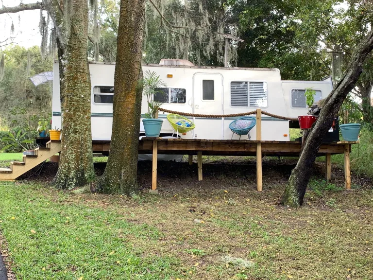 Resort style glam-ping on a quiet private ski lake. Lake Florence in Montverde, FL. Walking distance to Montverde Academy. Minutes from Orlando near main highways. Easy access to Walt Disney World Resort, Universal Studios and Legoland. This unique space is located at the end of a quiet residential street, surrounded by mature palm trees, with plenty of privacy and parking.The space